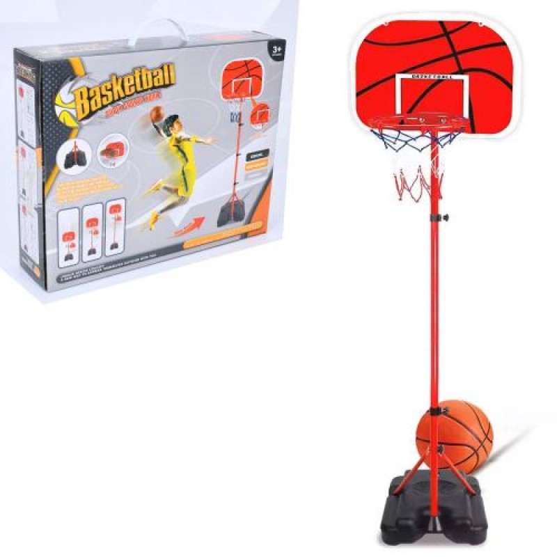 на стойке (металл) 143см, щит (пласт) 38-29см, кольцо пластик 25см, сетка, мяч, насос, кор-ци