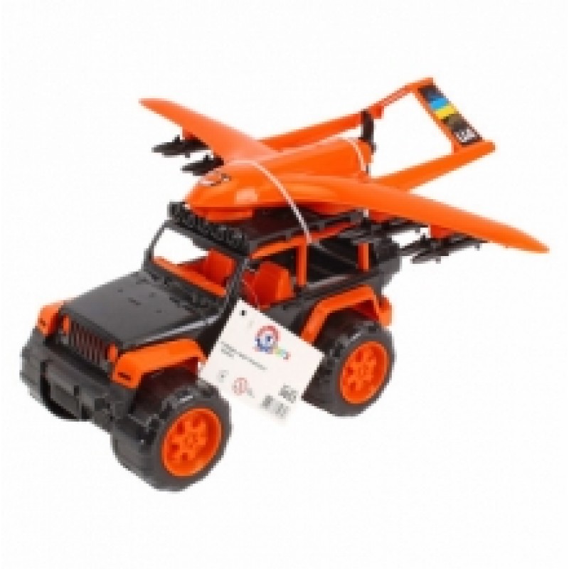 Набір транспорту позашляховик з літаком 0853 ТехноК - Інформація Подаруйте своїй дитині подвійний заряд радості та натхнення з іграшковим набором транспорту ТехноК! Цей динамічний дует – позашляховик та безпілотник – створений для захоплюючих пригод, рольових місій та безмежної дитячої фантазії. Ідеально підходить для гри вдома та на вулиці. Позашляховик – яскравий, реалістичний та функціональний – цей джип стане справжнім героєм улюблених сюжетів дитини. Основні характеристики: Відкритий кузов для зручного розміщення іграшкових пасажирів; Великий багажний відсік – простір для «вантажів» та ігрових аксесуарів; Високий кліренс - відмінна прохідність навіть на "бездорожніх" поверхнях; Деталізований інтер'єр – кермо, сидіння, реалістичні деталі. Позитивні якості: Стильний дизайн у чорному та оранжевому кольорах; Виготовлений із міцного, якісного пластику; Розмір: 28×16×15 см; Сприяє розвитку фантазії та сюжетного мислення; Безпечний для дітей віком від 3-х років. Безпілотник - стильна модель натхненна справжніми бойовими дронами, такими як Байрактар. Він зачарує маленьких захисників своїм виглядом та функціональністю. Особливості моделі: Ракети під крилами – ігровий елемент для оборони та місій; Колеса – для імітації зльоту та приземлення; Декорована кабіна – патріотичні наклейки та виразні «гримаси». Безпілотник легкий, зручний для гри, ідеально підходить для польотів у дитячій уяві – вдома чи на вулиці. Допомагає розвивати креативність, сюжетне мислення, комунікацію у грі з однолітками. Рекомендовано для дітей від 3-х років ✅ Безпечні матеріали ✅ Сучасний дизайн ✅ Висока ігрова цінність Позашляховик та Безпілотник ТехноК – іграшки, які приносять подвійне задоволення! яя Набір транспорту позашляховик з літаком 0853 ТехноК - Характеристики Розміри упаковки, см:42-34-22 Кількість штук в ящику:2
